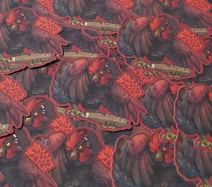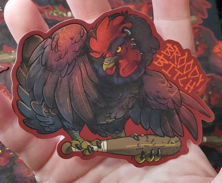 You do not know true wrath until you've had to take a dedicated broody hen off her nest. The very angriest won't even do the roaring scream that puts non-avian dinos to shame, they'll just start trying to rip your skin off and flog you in to oblivion. This matte sticker is waterproof and has a limited metallic effect to make the eyes, piercings, and nails shine depending on the lighting! Put it on your laptop, water bottle, or other sticker hoard location to show what you've survived or what you might do if someone hassles your chicks.