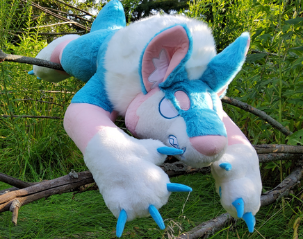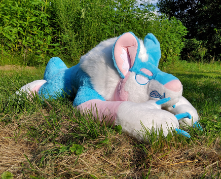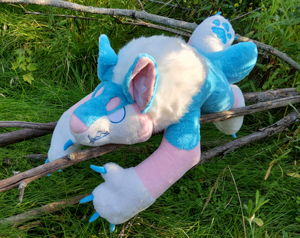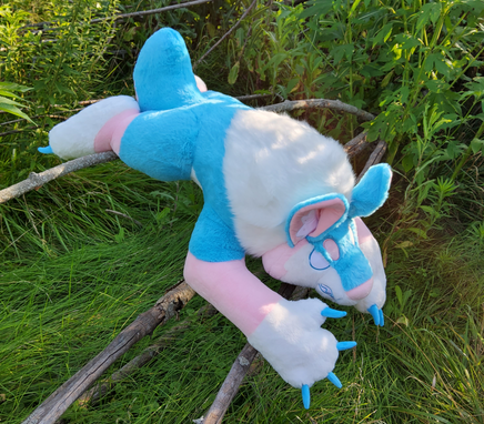 The same pattern as our giant werewolf, but in trans pride colors. This plush was funded as part of Big Brew Bash on Backerkit. Make sure to sign up for alerts so you know as soon as the plush is stocked! Numbers for this plush will be very limited.