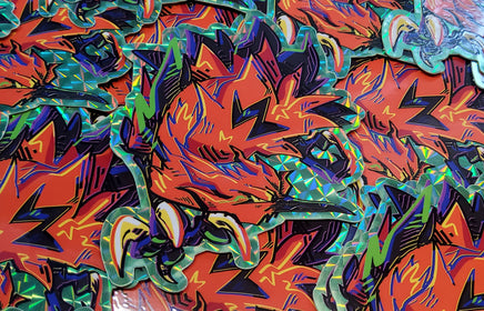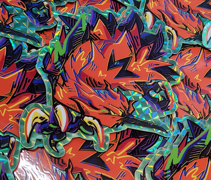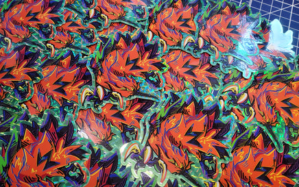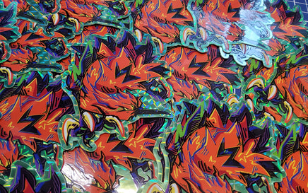 It's the best shade of orange and ratite as hell, this is the superior version. A glossy 3 inch sticker with a holo block teal border. It can adhere to most any clean surface and is waterproof so it is great for things like water bottles, and is rated for outdoor use.